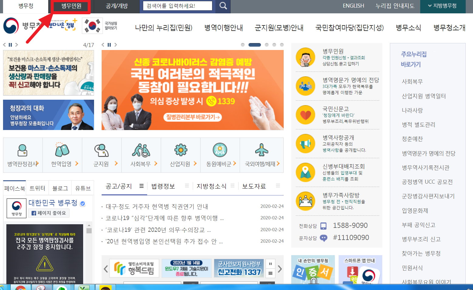 검색 창에 병무청 검색합니다. 이정도는 다 아시죠? 10년도 지난 전역일을 제가 필요로 하게 될 줄이야. 옛날 다이어리를 들춰봐야 하나 하고 고민하다가 아날로그가 아니라 요즘은 디지털 시대에 맞게 처리합니다. 요즘 코로나 때문에 군인들 휴가 금지되고 훈련도 없고 해서 많이 고생하는 것 같습니다.